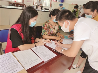 近日,10名来自不同大学的学生组成志愿服务队,到泰山区岱庙街道灌庄社区新冠疫苗接种点开展志愿服务,为新冠疫苗接种工作贡献青春力量。在新冠疫苗接种点,大学生志愿者为居民登记信息、维持现场秩序,并引导居民扫描二维码加入疫苗接种通知群,以便接收最新接种消息,提高疫苗接种的效率。“我想利用暑假的时间,为社会作点贡献,让大家接种疫苗的过程更舒心、更流畅。”成都信息工程大学学生高天姿说。灌庄社区工作人员表示,大学生志愿者耐心讲解接种流程,搀扶行动不便的老年人测血压血糖、接种疫苗,让整个疫苗接种过程和谐有序,得到了大家的一致赞扬。