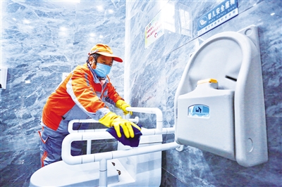 陈文红负责的公厕位于公园附近,人流量大。为最大限度保证公厕卫生整洁清爽,她坚持“拖把不离手、跟着市民走”,用“一客一清”的保洁方式清理公厕。明亮的地砖、洁净的便器、洗手盆,烘干器、洗手液等设施用品一应俱全……干净整洁的如厕环境让人心情愉悦。