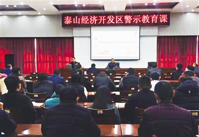 本报12月6日讯(通讯员 耿震 苏群)为进一步加强全面从严治党,提高广大党员干部职工的纪法意识,近日,泰山经济开发区举办警示教育专题讲座,邀请区纪委监委有关同志为全体干部职工上了一堂警示教育课。