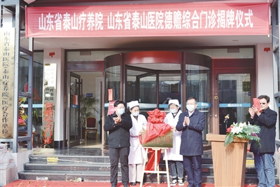 本报12月6日讯(最泰安全媒体记者 张伟)日前,山东省泰山疗养院(山东省泰山医院)德赡综合门诊正式揭牌,标志着我市首个公立医院“牵手”社会养老机构设立的门诊正式开诊。
