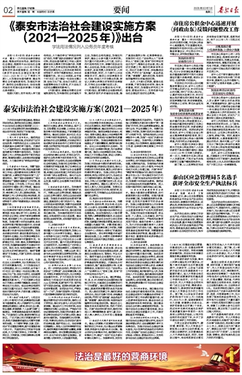 《泰安市法治社会建设实施方案(2021—2025年)》出台