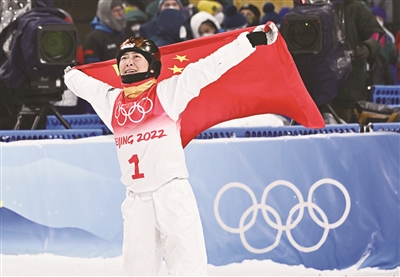新华社北京2月14日电 31岁的冬奥会“四朝元老”徐梦桃终于在北京圆梦,她14日夺得北京冬奥会自由式滑雪女子空中技巧金牌。这是中国代表团在本届冬奥会上获得的第五枚金牌,中国代表团的金牌数也由此追平了在2010年温哥华冬奥会创造的历史最佳战绩。12年前中国代表团在温哥华冬奥会上夺得5金2银4铜。