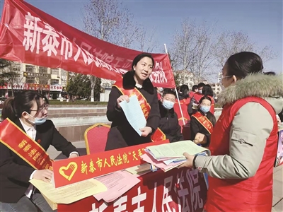 近日,新泰市人民法院组织该院“天平”志愿服务队以该市新时代文明实践志愿服务活动月启动仪式暨志愿服务展示交流活动为契机,开展法治宣传活动。