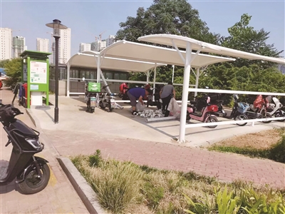 ■岳秀福邸小区新建的充电车棚。通讯员供图