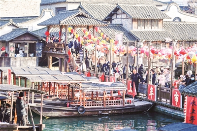 ■游客在浙江省桐乡市乌镇景区逛“水上年市”(1月25日摄)。新华社发