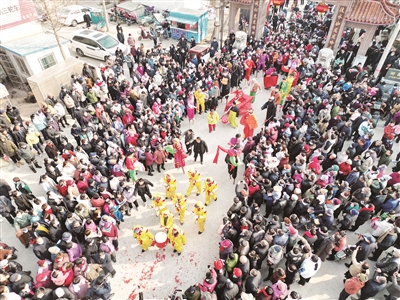 2月6日(农历正月十六)一大早,徂汶景区旧县大桥上就挤满了前来“爬桥”的村民。昂扬的鼓声,欢快的山东大秧歌,扮成唐僧、孙悟空等形象的演员踩着高跷,敲锣打鼓,引得村民跟着一起在桥上走。