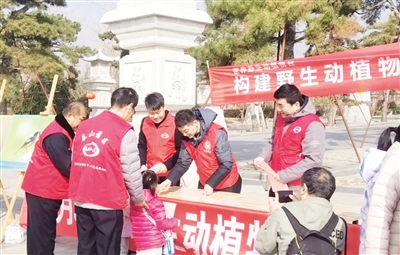 本报3月7日讯(记者 张昊)今年3月3日是第十一个“世界野生动植物日”。近日,市林业局、市林业保护发展中心组织部分党员干部赴岱北文化广场开展“关爱野生动植物”主题党日暨“世界野生动植物日”宣传活动。