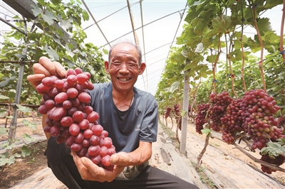 眼下正是葡萄成熟的季节,泰山区邱家店镇中郭庄村村民柴培发种植的葡萄陆续“上架”。