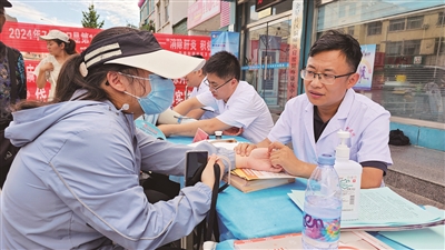 本报7月29日讯(记者 张芮)日前,泰山区岱庙街道金星社区新时代文明实践站在社区中医堂开展了“弘扬中医国粹、传承中医文化”义诊活动,把健康市集开到了居民“家门口”。