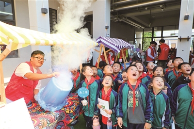 塑料袋提杯子实验、烟雾泡泡器实验、加压水汽喷发实验……在泰山科技学院东岳书院,丰富多彩的科学实验吸引了学生们的注意。“我觉得制作干冰特别有意思。在这里,许多课堂知识被搬进现实生活,科普活动拉近了我与科学知识的距离。”山口镇东碾疃学校五年级学生焦雯清对记者说。据了解,此次活动设置了参观体验、研学环节,让学生们零距离“触摸”科技。