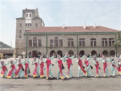 4月26日上午,泰山火车站老站房前广场上,百年德式建筑的砖红色墙面与暖阳交相辉映,“芳华流韵1909”沉浸式演出在这里启幕。