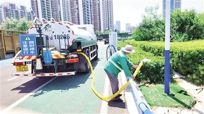 本报6月17日讯(记者 董文一)近日,面对持续干燥少雨的严峻“烤”验,市城市管理局园林绿化管理服务中心迅速行动,扎实推进抗旱保绿工作,力保绿化苗木安全度夏。