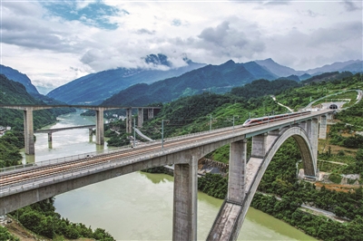 6月27日,首发高铁班列驶过渝厦高铁武隆黄草乌江特大桥(无人机照片)。 当日,新建重庆至厦门高速铁路(以下简称渝厦高铁)重庆东至黔江段开通运营,渝厦高铁重庆东至长沙段全线贯通,重庆至长沙最快3小时53分可达,旅行时间大幅压缩。 渝厦高铁是我国“八纵八横”高铁网的重要组成部分。此次重庆东至长沙段的全线贯通,在成渝地区双城经济圈与长株潭城市群间新增了一条快速客运通道,将极大便利沿线群众出行,对促进区域互联互通和经济社会协调发展,具有十分重要的意义。 同日,西部地区最大高铁枢纽站重庆东站也同时投入使用。