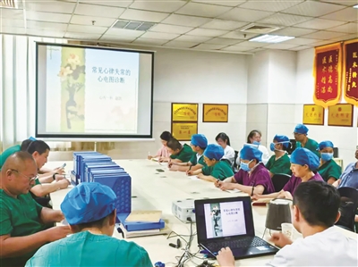 本报7月10日讯(通讯员 周峰)近日,新泰市人民医院手术麻醉科邀请心脏内一科主任赵凯作主题为“常见心律失常的心电图诊断”的专科讲座。