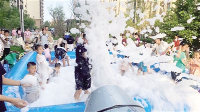 摸石子、找贝壳、打水仗……活动现场,孩子们穿梭在泡沫中,玩得不亦乐乎。“我家孩子和小伙伴一起过来打水仗,玩得很高兴,还认识了新朋友。”一位家长为活动点赞。