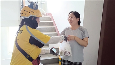 “我喜欢接触新事物,是个闲不住的人,也不怕吃苦。”王硕笑着评价自己。2021年,王硕加入骑手团队,凭借军人特有的韧劲,她逐渐从行业中脱颖而出,成为标杆人物。4年来,她日均工作8小时,累计配送5万单,将老县衙片区的每条街巷都印在脑海里。
