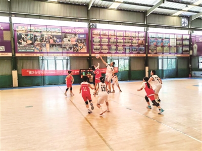 ■泰师附校女子篮球队队员身穿白色球衣,在比赛中奋力拼抢。