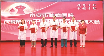 在第八个中国医师节来临之际,泰安市肿瘤医院以“医疗立院、创新赋能”为导向,以建制度、夯基础、强管理、促发展为基准,以“德馨于行、技精于勤”为主题,精心策划并开展了医师节系列活动,旨在构建集人文建设、能力提升、质量管控于一体的立体化赋能体系,全面彰显新时代肿瘤防治工作者的使命担当。