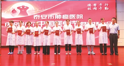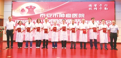 8月15日下午,泰安市肿瘤医院在门诊楼召开医师节庆祝表扬大会。泰安市肿瘤医院名誉院长、上海市胸科医院原副院长韩宝惠出席会议,医院党政领导班子成员、医药技护师代表及职能科室干部职工百余人齐聚一堂,共同见证医者荣光。