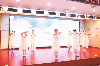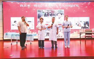 随后,会议进入文艺会演环节。医师合唱《灯火里的中国》,歌声中饱含家国情怀与医者担当。舞蹈《平凡天使》诠释了医务工作者日复一日的默默守护,于平凡中书写伟大。情景剧《直“结”面对,有“核”惧哉》以幽默诙谐的方式展现直面疾病的勇气和信心。萨克斯独奏《万水千山总是情》让全场人员沉浸在温情的氛围中。情景剧《心灵密码》道出了医患之间真诚的理解与沟通,是战胜病魔的基石。压轴歌曲《守护生命的光》更是唱出了全体医务工作者“以心为灯、照亮生命”的坚定信念。
