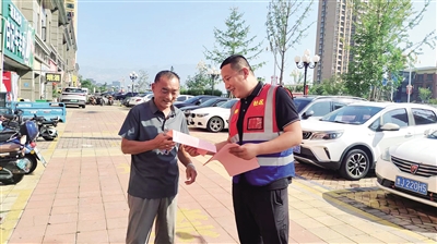 ■工作人员为居民发放宣传资料。记者 刘小东 摄