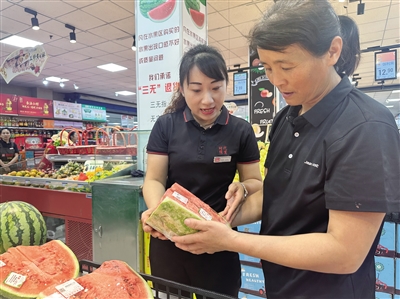 马海燕,新时代生活超市生鲜部经理,每天早上,她都会和同事们一起,在当天售卖的水果上贴上“三无”退换的标签。“从2022年起,我们超市就开始实行水果类商品‘三无’退换货制度,水果口感不好或有质量问题,即使无实物、无小票、无理由,也可以退换货。我们设立了专门款台处理相关业务,赋予一线员工500元退换货解决权,确保消费者快速有效地解决问题。”马海燕说。当问及这样的退换货制度是否会对超市造成一定损失时,马海燕回答说:“不仅没有损失,反而销售额比同时期增多了。我们对销售的商品很有信心,因为我们都是源头直采,质量有保证。”