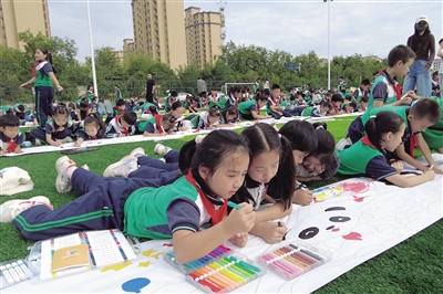 国庆节来临之际,泰安市实验学校万境水岸小学组织学生开展了“绘百米长卷迎国庆”活动。学生在画卷上描绘了雄伟的天安门、鲜艳的五星红旗、壮丽的长城等图案,用画笔表达对祖国的热爱与祝福。此次活动将美育与爱国主义教育相结合,让学生在创作中厚植家国情怀。记者 陈阳/图 李晨希/文