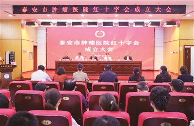 会上,市红十字会相关负责同志宣读《关于成立泰安市肿瘤医院红十字会的批复》;市红十字会与市肿瘤医院相关负责同志共同为泰安市肿瘤医院红十字会揭牌,并为医院红十字会抗癌先锋志愿服务队授旗;会员代表何秀玉宣读《红十字运动七项基本原则》。