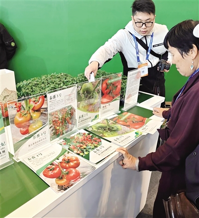 在“好品山东”推介专场,“泰山番茄”令人瞩目。嘉宾现场试吃,感受其浓郁的汁水与果香。泰山番茄协会负责人为现场嘉宾讲述了“泰山番茄”的成长故事:“我们建立了全国最大的番茄战略种质资源库,收录各类番茄种质资源1万余份,成功培育出以‘泰番’系列为代表的40余个番茄新品种……打破了国外番茄种源垄断。”该负责人表示,此次专题推介成功将“泰山番茄”这一明星单品推向了京津冀市场。