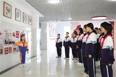 仪式结束后,与会人员共同观摩了新征程少先队“壮苗工程”工作成果展。岱岳区少先队发展共同体集中展示了“红领巾爱阅读”“红领巾爱科学”“红领巾爱国防”“红领巾爱运动”“红领巾爱艺术”“红领巾爱劳动”等实践成果,促进少先队员健康全面发展。文化长廊处,“红领巾讲解员”介绍了学校党、团、队一体化育人成果。学校为少先队员搭建了共同成长的实践平台,进一步引导他们以“新时代好少年”标准要求自己,为强国复兴积蓄青春力量。