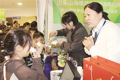 “同学们,你们知道泰山深处藏着一种‘千年仙草’吗?它蔓长一米,四片叶子对生,根块如胡萝卜般粗壮,它就是泰山四叶参。”26日,在泰山国际会展中心举办的“活力泰安·乐享消费·惠享生活”泰安市服务消费季活动上,山东山海螺健康科技有限公司的展台前,工作人员向泰安市小记者团的小记者介绍关于泰山四叶参的故事。