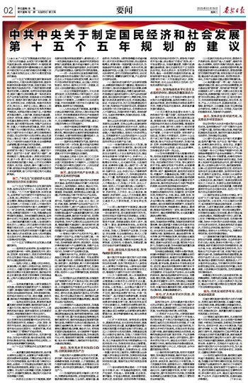 中共中央关于制定国民经济和社会发展第十五个五年规划的建议