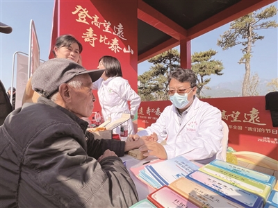 本报11月3日讯(通讯员 张男)日前,全国“我们的节日·重阳”主题文化活动暨“登高望远·寿比泰山”敬老系列活动在泰安举行。活动以岱庙文化广场为主会场,辐射泰山风景区,吸引了近1100名参与者。在“老年康养区”,市中医医院现场提供耳穴贴压、火龙罐等中医传统疗法诊疗,知名中医卜庆丰为市民现场把脉问诊,成为活动一大亮点。