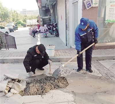 检修现场,志愿者与专业工作人员携带工具跟随技术人员逐一排查阳光和墅小区监控设备,协助更换故障零件、梳理调试线路,确保每处监控都能正常发挥“天眼”作用。在绿化修剪区域,志愿者配合绿化人员登高作业,修剪过密、过高的树枝,及时清运枯枝败叶,消除了坠落隐患,还原了小区整洁有序的绿化环境。针对路面缝隙问题,志愿者与维修人员默契配合,完成水泥填充、压实抹平的全流程作业,让破损路面焕然一新。