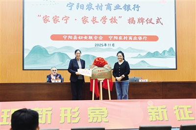 随后,宁阳县妇联负责人与宁阳农商银行负责人共同为家长学校揭牌。宁阳县妇联现场赠送了《家庭抗挫力课程》及《家风家教加油站》宣传小报,为家长提供实用的教育参考资料。