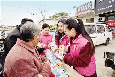 ◀工作人员为群众发放健康宣传资料。通讯员供图