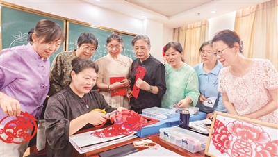 为了让更多老年人爱上剪纸、学会剪纸,郑凤娟倾注心血。她独创的“阶梯式教学法”,将传统剪纸技艺科学拆解为8个层级。这套教学方法突破了传统“口传心授”的局限性,为非遗传承提供了可复制、可评估的标准化路径。学员学得明白,进步明显。“郑老师教得特别细,我们都能跟上。”一位老年学员表示。