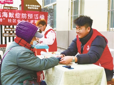 活动现场设置多个特色服务区域。在科普认知区,大学生志愿者耐心为老人讲解阿尔茨海默病的预防知识;在“五感挑战”互动区,老人在趣味游戏中锻炼认知能力。此外,活动还设计了健康检测、围炉煮茶等环节,让老人在获得健康服务的同时,感受来自年轻一代的陪伴与温暖。