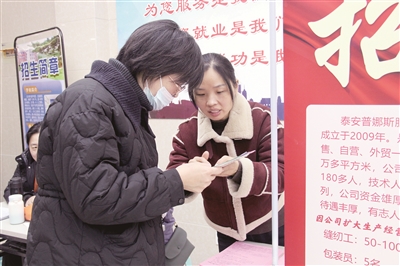 本报12月9日讯(记者 杨文洁 通讯员 周强 于敏)求职者拿着简历,满怀期待地穿梭于各个企业展位间;企业招聘人员热情地与求职者交流,笔尖在登记表上不停书写着……近日,肥城市人力资源市场内,由肥城市人力资源和社会保障局、肥城市公共就业和人才服务中心、新城街道办事处联合主办的高校毕业生就业服务专项行动火热开启。