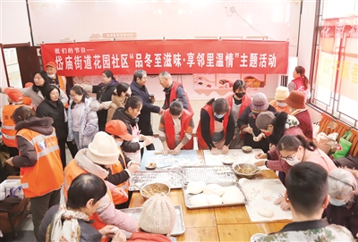 冬至临近,12月18日上午,泰山区岱庙街道花园社区联合泰山区非遗制作团队等,在社区居家养老服务中心暖心食堂开展“品冬至滋味·享邻里温情”主题活动。特殊家庭代表、退役军人、辖区居民及快乐幼儿园师生齐聚一堂,共赴一场冬日暖心之约。记者 刘小东/文 赵文文/图