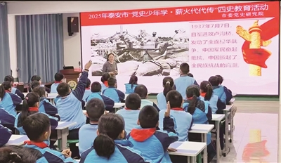 本报1月5日讯(记者 张建)近日,市委党史研究院到泰山区三友小学开展以“党史少年学·薪火代代传”为主题的“四史”教育宣讲活动。市委党史研究院工作人员、三友小学师生代表等60余人参加活动。