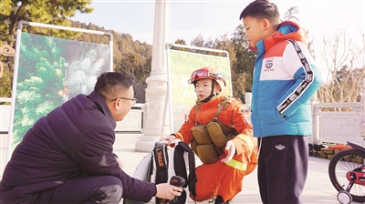 现场还设置了灭火装备展区,消防救援人员邀请游客体验灭火装备的使用。“原来灭火装备这么重!我现在才体会到消防员灭火有多累,也真切感受到森林防火人人有责。”游客王女士说。