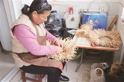 像桑桂芳这样的从业者,在书香名府草编工坊还有20余人。其中既有带娃的宝妈,也有赋闲的老年人,大家不仅能在工坊里干活,还能把原料拿回家加工,工坊会提前把玉米皮、蒲草等原料按份打包,居民想居家编织随时可来领取,编好的半成品或成品工坊会派人上门回收。居民获取计件工资,多劳多得,还能灵活安排时间,这份“既能居家干活、又能兼顾家庭”的弹性工作,让不少居民直呼贴心。