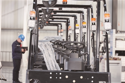 走进中机叉车数智化制造单元,机器人焊接工作站嗡嗡作响。双工位六轴焊接机器人以0.01毫米的精度进行作业,效率提升7倍;1.2万瓦激光切割机自动下料,误差仅±0.05毫米;MES系统实时调度生产计划,效率提升56%……白立秋介绍,公司自主研发的3—3.5吨高压锂电叉车可在高海拔、极寒等极端环境下连续作业12个小时,性能行业领先。2026年,公司将在做好已有产品推广普及的基础上,专注于高附加值窄通道叉车等新品的研发,深耕海外叉车市场,预计年产叉车3000台。