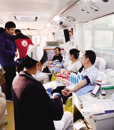 ◀干部职工踊跃参与无偿献血活动。通讯员供图