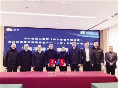 作为央企,通用康养在我市布局的康养产业平台拥有较高的品牌信赖度和先进管理经验,成功打造了“康养+多业态”的创新模式。山东省泰山医院是我市历史悠久的省级老年病医院和医养结合示范单位,拥有精湛的医疗技术和丰富的老年病诊疗经验,保健服务体系完善。双方资源互补、优势叠加,为我市康养产业的创新发展注入了新的活力。