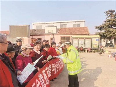 本报2月2日讯(记者 张智凯)日前,泰安交警岱西大队组织宣传人员深入土门村开展交通安全宣传活动,切实增强农村群众交通安全意识,有效防范农村道路交通事故。