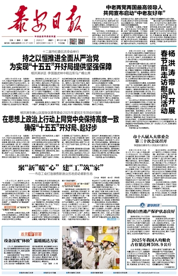 杨洪涛指出,近年来,泰山区在市委坚强领导下,锚定“当标杆、作表率,打造首善之区”目标定位,真抓实干、奋发进取,各方面工作都取得了新的成绩,为全市发展大局作出了重要贡献。要把这种好的势头保持下去,咬定“十五五”目标不放松,百尺竿头,更进一步。