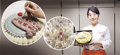 在赵燕看来,非遗传承不能固守传统。“如果还是原来那些样式,喜欢的人不会多。”她大胆创新,用蝶豆花调出清新的蓝色,用南瓜染出元宝的金黄,用菠菜汁和出松柏的翠绿。为模仿泰山石颜色,她尝试将黑米、黑豆、黑芝麻磨成“三黑粉”掺入面团;为呈现桃花粉色,她将仙人掌果烘干磨粉。连和面也不再是简单的水加面粉,而是将水换为牛奶、鸡蛋,提升营养价值与口感。“不仅要外形创新,迎合年轻人市场,口感也要更丰富、更健康。”赵燕说。