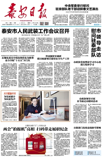 本报2月7日讯(记者 秦承娇 池彦明)2026年泰安两会即将启幕,记者注意到,在泰山国际会展中心泰山会堂外,一处以鲜红旗帜为视觉背景的打卡点格外醒目。这可不是普通的拍照墙,而是人大代表和政协委员可以与两会一起上头版的“拍报机”,望岳客户端演示机也同步亮相。